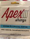 Cryogenic คือการนำเอาสายกีตาร์ที่ผลิตเสร็จแล้วไปแช่ลงใน ไนโตรเจนเหลว ซึ่งความเย็นจัดจะทำให้โมเลกุลของโลหะเรียงตัวกันใหม่ทำให้สายของ Apex มีความยืดหยุ่นและแข็งแรง รวมไปถึง Sustain ที่ดีกว่าสายแบบปกติ รวมไปถึงอายุการใช้งานที่ยืดออกไปเล็กน้อย โดยไม่ต้องผ่านการเคลือบสาร ให้ทำร้ายโทนเสียงให้ด้อยลง Hyper Elliptical คือการพันสาย (Wound) ที่ชิดกันมากกว่าปกติ จากการที่ใช้แกนของสายแบบวงรี...