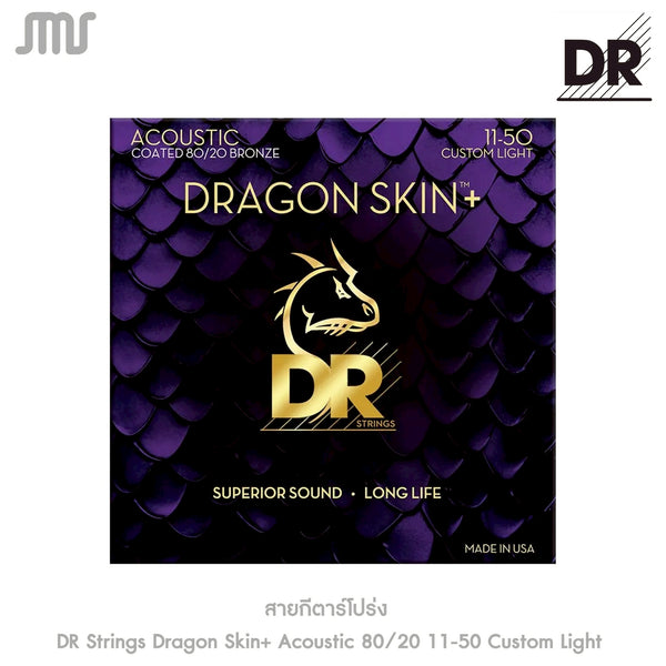 สายกีตาร์โปร่ง DR Strings Dragon Skin+ Acoustic 80/20 11-50 Custom Light